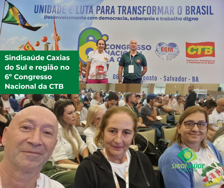 Acontece até amanhã, em Salvador (BA) o 6º Congresso Nacional da CTB — e o Sindisaúde Caxias do Sul e Região está presente com a presidente Bernadete Giacomini e o secretário-geral Danilo Teixeira, representando com orgulho e dedicação todos os trabalhadores e trabalhadoras da categoria profissional.